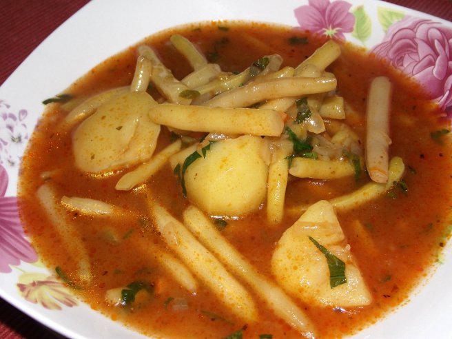 Mancare de fasole verde cu snitele de soia