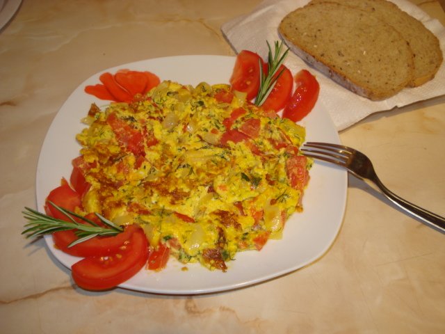 Omleta cu rosii,ardei si marar