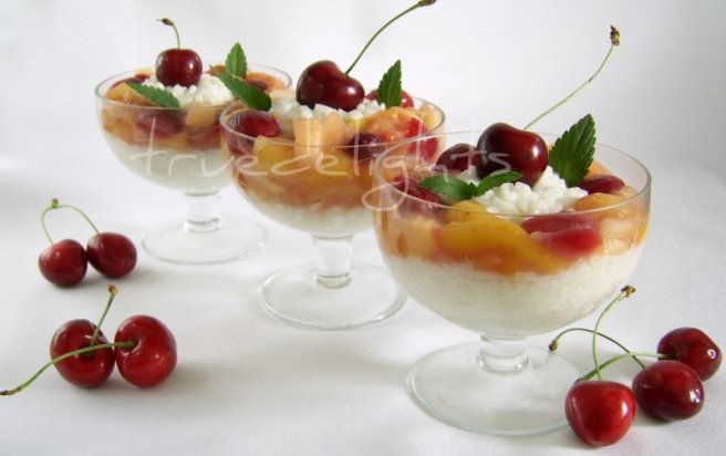 Orez cu lapte si fructe caramelizate