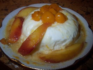 Panna Cotta in sos cald de nectarine si physalis