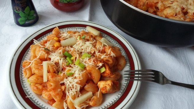 Paste cu piept de pui in sos tomat cu busuioc-1