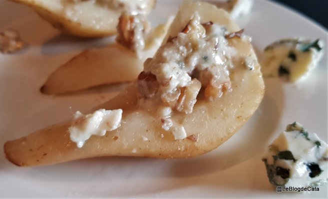 Pere la cuptor umplute cu branza Roquefort si nuci