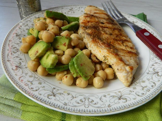 Piept de pui la gratar cu salata de naut si avocado