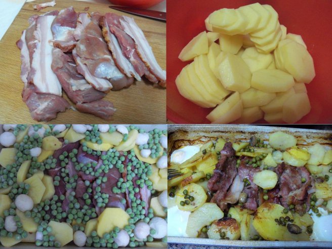 Platou cu afumatura, cartofi, oua, mazare si ciuperci-2