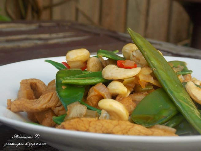 Porc thailandez cu mangetout si caju