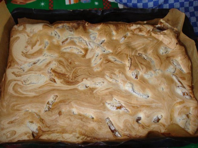Prajitura cu dulceata de caise si glazura de galbenusuri