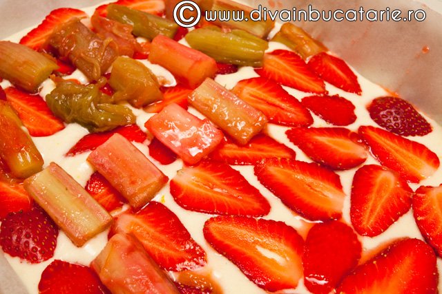 Prajitura cu rubarba si capsune la cafea