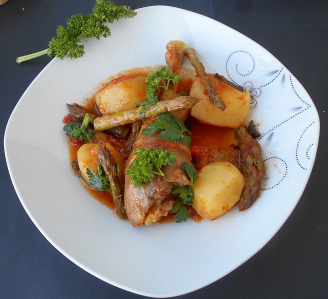 Pui cu sparanghel si cartofi