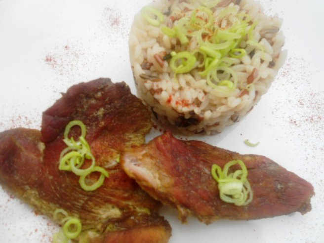 Pulpa de porc la tava si orez salbatic