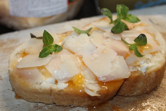 Reteta de tartina cu unt, dulceata de caise si parmesan