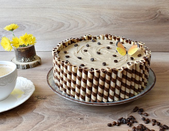 Reteta de tort cu crema de cafea si crema de fructe de padure