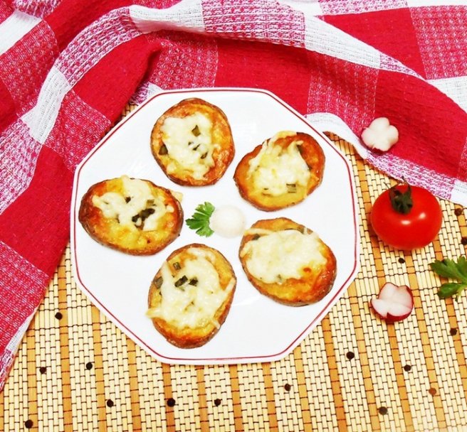 Rondele de cartofi cu miez de lapte, cascaval si ceapa verde