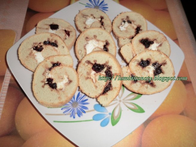 Rulada din albusuri cu dulceata de cirese si crema de vanilie