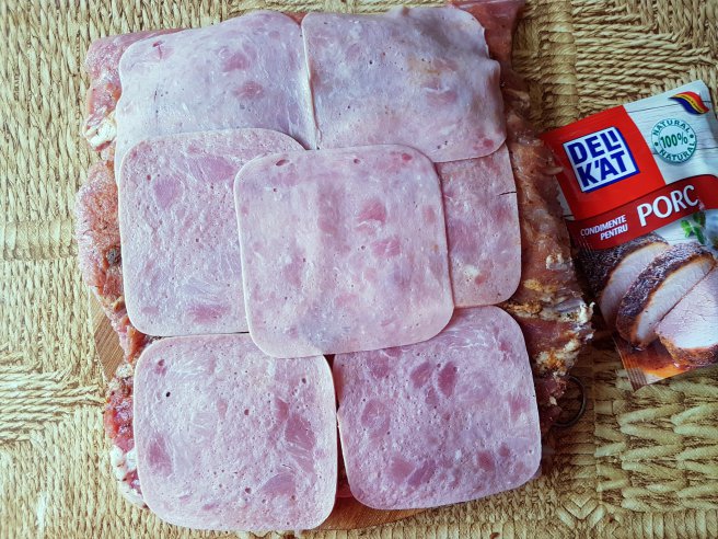 Rulada din carne de porc umpluta cu sunca si cas afumat