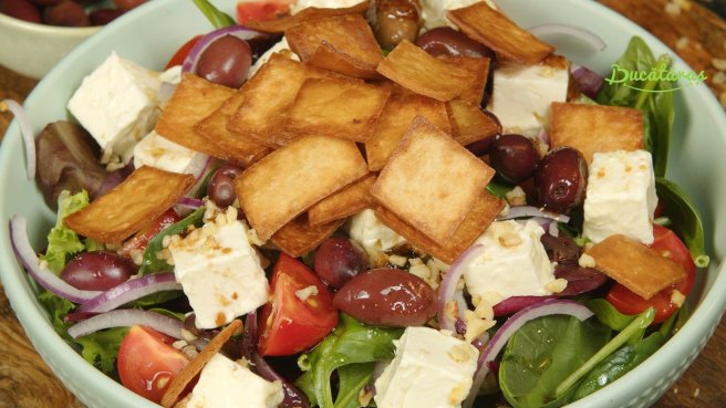 Salată caldă cu lipie crocantă - Rețeta simplă și gustoasă
