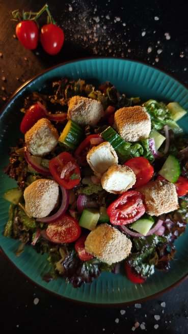 Salată cu brânză feta pane - Rețeta simplă și gustoasă