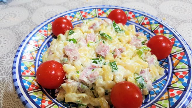 Salata de fasole verde cu salam si iaurt