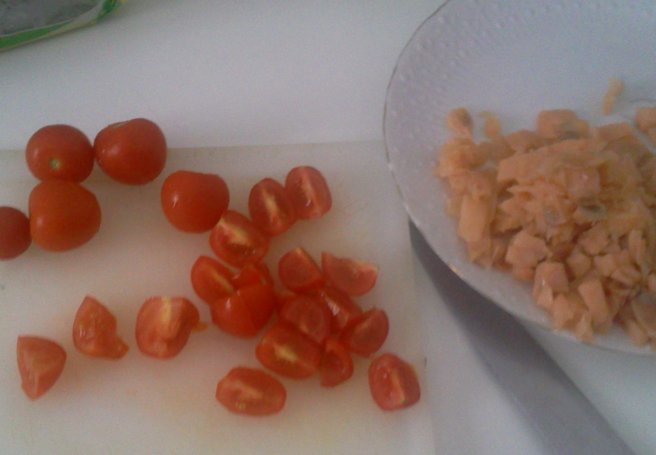 Salata de orez cu somon afumat,rosii chery si rucolla