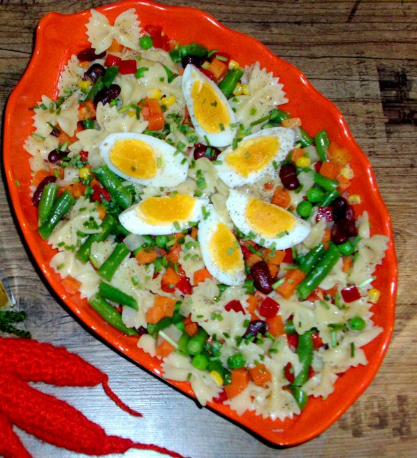 Salata de paste, cu amestec de legume mexicane si oua fierte
