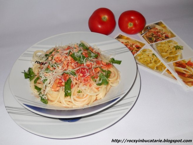 Spaghete cu carne tocata de pui
