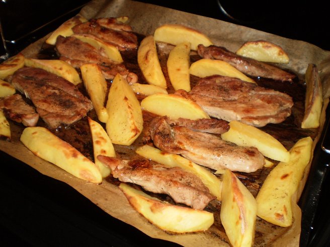 Spata de porc cu cartofi la cuptor