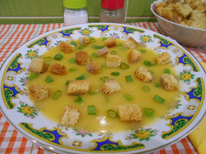 Supa crema de dovlecel, cu crutoane si ceapa verde-9