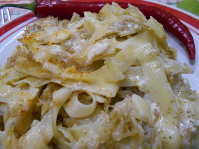 Taietei cu varza acra calita, smantana si cascaval, la cuptor