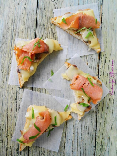 Toast cu ciuperci la grill și somon fume