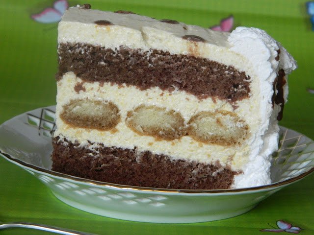 Tort cu blat de cacao si piscoturi si crema de sampanie-reteta nr 300