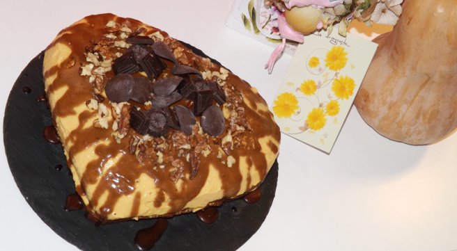 Tort cu ciocolata, nuci si crema de dovleac cu branza