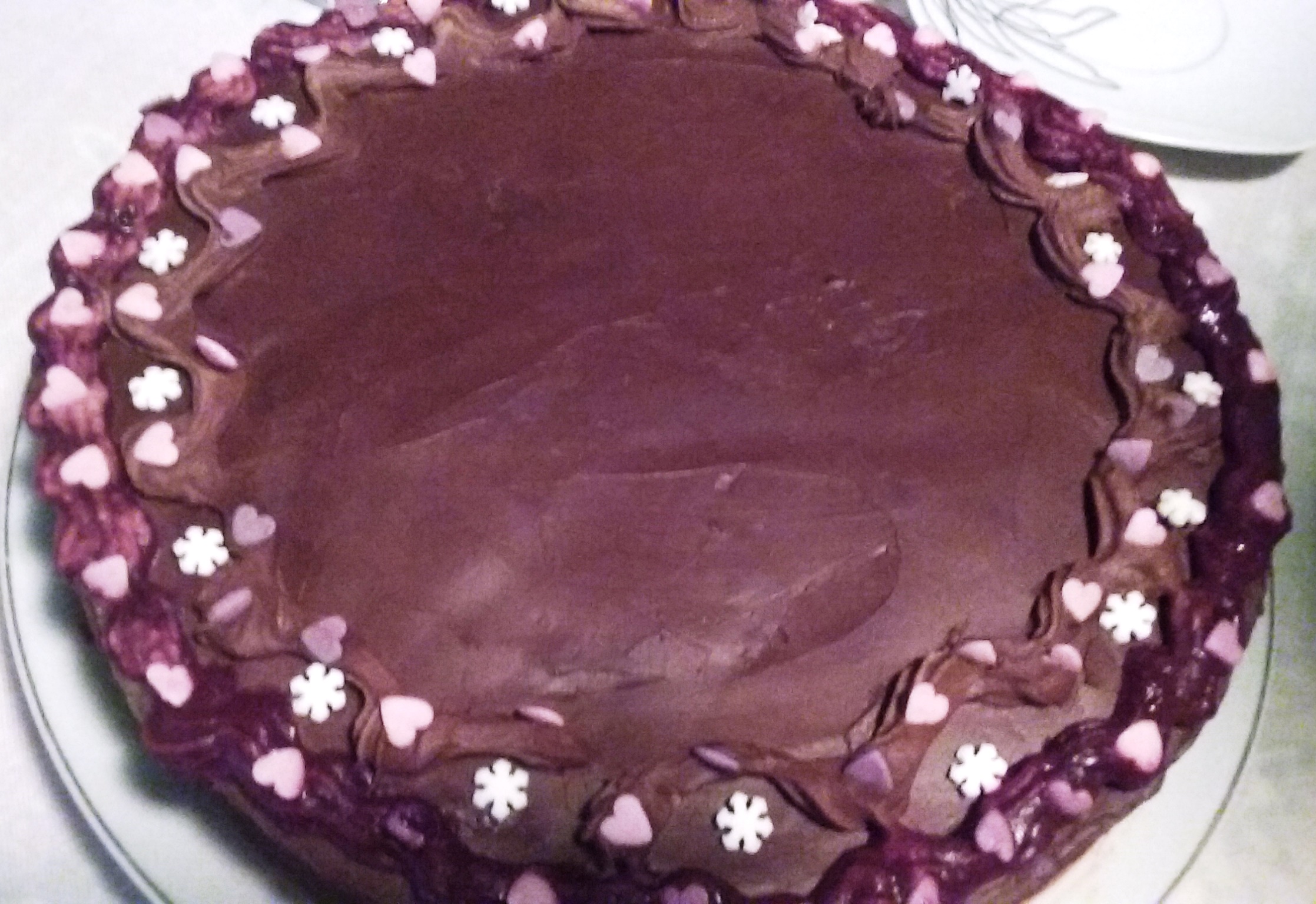 Tort cu nuca si crema de ciocolata si fructe rosii-1