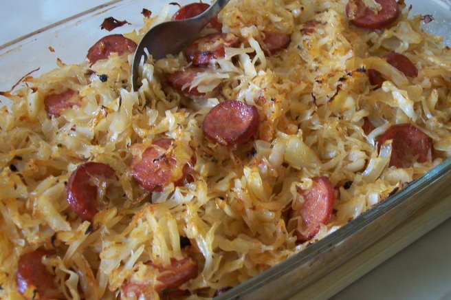 Varza cu carnati la cuptor