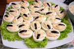 Peste patratelele de paine unse cu unt se aseaza icre rosii si negre. Separat se spala o lamaie, se feliaza, dupa care se taie bucatele si se aseaza peste fiecare patratel de paine cu...