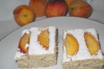 Tapetam o tava cu hartie de copt si turnam compozitia o nivelam si asezam feliile de piersica (sau ce fruct dorim) una langa alta...