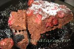 La Blat : am batut galbenusurile + fructoza + marga semitopita. Am adugat cacao, esenta de rom si alternand am pus laptele si faina amestecata in prealabil cu praful de copt. Am copt cca 30 minute la foc mediu. Am scos pe un gratar si am lasat la racit.