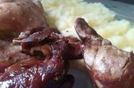 Portionam iepurele ; Pregatim o tava de cuptor in care punem untul taiat bucati ; Asezam carnea ; Condimentam ; Turnam 1-2 pahare de apa , acoperim cu staniol si dam la cuptor pentru 40-50 minute la 190 gr ; Scoatem tava din cuptor si indepartam staniolul ; Punem din nou in...