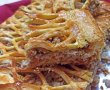 Aluatul mai mic îl întinzi în foaie și îl decupezi cu o rolă pentru patiserie sau îl decupezi frumos, după plac. Acoperi cu el plăcinta. O ungi cu ou și dai la cuptor, aprox 30 de minute la foc mediu sau până se rumenește.