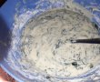 Batem ouale cu sarea, adaugam laptele si uleiul si amestecam bine. Adaugam apoi faina si praful de copt, iar la final spanacul si mararul tocate marunt ( eu am avut si spanac si marar congelate) si cascavalul dat pe razatoarea cu ochiuri mari.