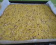Când amestecul este omogen, se întinde în strat subțire și uniform în tava în care s-a pus hârtie de copt, în prealabil.