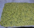 Bati albusurile spuma cu un praf de sare, apoi adaugi spanacul (eu am pus congelat, daca aveti proaspat, trebuie fiert in prealabil) si galbenusurile.