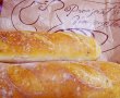 Cu ceva vreme în urmă m-a amuzat povestioara unui prieten despre dragostea lui pentru bagheta franţuzească. Adevărul este că nu e greu să te îndrăgosteşti de pâinicile astea,ca să nu mai pomenesc de mirosul divin care se răspândeşte în toată casa când sunt la cuptor. Ori acum abia aşteptăm să avem motiv sa coacem ceva la cuptor. Reţeta care mi-a plăcut cel mai mult am găsit-o pe site-ul La PrajiturEla,aşa că m-am hotărât repede să le pregătesc,chiar dacă nu am avut timp suficient să le las la frigider. Cu siguranţă am să repet reţeta şi voi lăsa aluatul la frigider peste noapte,astfel va fi mult mai fraged.