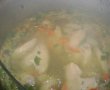 Se mai lasa sa dea 2-3 clocote ,apoi se ia deoparte.Se potriveste de sare,iar inainte de a se servi la masa se adauga verdeturile taiate fin.