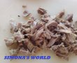 Cand carnea este fiarta, se scot bucatile din oala, oasele se dau deoparte, carnea se taie, binenteles, in cubulete mici.