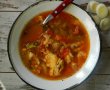 Punem carnea de pui la foc, intr-o oala cu apa cat sa o acopere si sa o depaseasca. Cand incepe sa fiarba, spumam bine si adaugam morcovul, ceapa si ardeiul taiate cubulete. Dupa 15 minute, adaugam conserva de rosii mixata si conopida. Cand conopida a inceput sa se inmoaie, adaugam borsul fiert separat si prazul rondele de 1 cm grosime. Potrivim de sare si piper. Mai fierbem 5 minute, dupa care adaugam leusteanul si stingem focul.