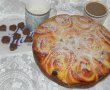 Intindem aluatul pe masa infainata in forma dreptunghiulara, se ungem cu crema si deasupra punem ciocolata, rulam cu grija si taiem rulouri de cca 5-7 cm.