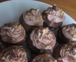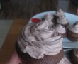 Pentru briose, separam ouale si batem albusurile cu zaharul, doar pana cand acesta se topeste, nu pana se intareste.Se adauga galbenusurile,untul topit si laptele si se amesteca bine. Bicarbonatul se stinge cu otet, la fel si praful de copt si se incorporeaza, apoi adaugam treptat faina si mai la final cacao.Adaugam pana cand compozitia devine mai tare putin ca la chec. Luam o lingura si punem in 12 forme (de silicon am folosit) , pe care le dam la cuptorul preincalzit pentru aproximativ 30 minute (sau pana sunt rumene si pe fund si pe deasupra).