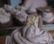 Scoatem compozitia de frisca de la frigider si o batem cu un intaritor de frisca pana se intareste bine.Dupa ce briosele s-au racit, le decoram cu posul.
