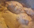 Budinca obținută se toarnă într-o formă tapetată cu foaie de copt și se coace, în cuptorul preîncins cca. 40 de minute la 200 grade. După ce trece testul scobitorii, se scoate din cuptor, se lasă să se răceasă, apoi se pudrează cu zahăr praf.