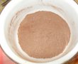 Intr-o craticioara, pui ciocolata taiata marunt,zaharul, cacaoa, faina de orez si cea de grau si praful de sare.