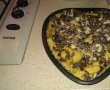 Am uns tava cu unt, am asezat feliile de cozonac peste care am preserat stafidele scurse si bucatelele de ciocolata, apoi am varsat deasupra compozitia din lapte si oua si l-am lasat 2 minute cat aceasta sa se aseze bine in tava dupa care l-am dat la cuptor la 180 de grade pana cand suprafata budincii a devenit usor maronie si s-a format o crusta crocanta.